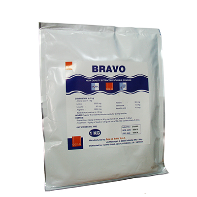 Trị bệnh: 4 g BRAVO/1 kg thức ăn hoặc 120 g BRAVO/1 tấn cá. Cho cá ăn liên tục trong 5 ngày.
