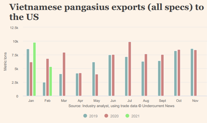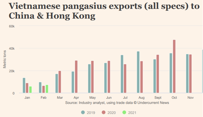Việc hạn chế nhập khẩu thực phẩm của Trung Quốc vẫn nghiêm ngặt như trước nhưng hoạt động giao thương thông suốt hơn. Bà Vi Tâm – TGĐ Công ty CP Vĩnh Hoàn (nhà xuất khẩu cá tra lớn nhất Việt Nam) nói với Undercurrentnews rằng, doanh số tháng 3/2021 của công ty đạt 90% so với bình thường.