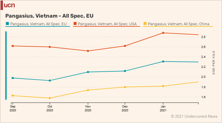“Mặc dù chúng tôi đang phải đối mặt với việc chi phí vận chuyển đường biển cao, giá bán cá ở EU vẫn ổn định, các nhà cung cấp Việt Nam đang cố gắng đẩy giá cao lên nhưng không ai đặt”, ông cho biết vào cuối tháng Ba.