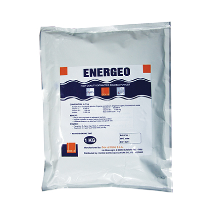 - Trị bệnh : 3 - 4 g Energeo cho 1kg thức ăn. Cho tôm ăn 2 lần/ngày